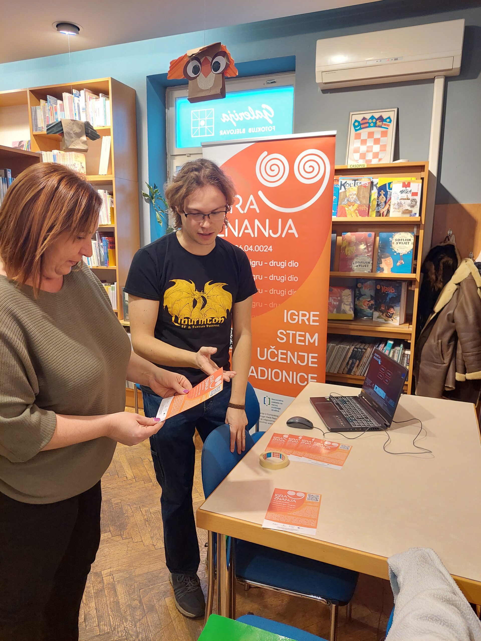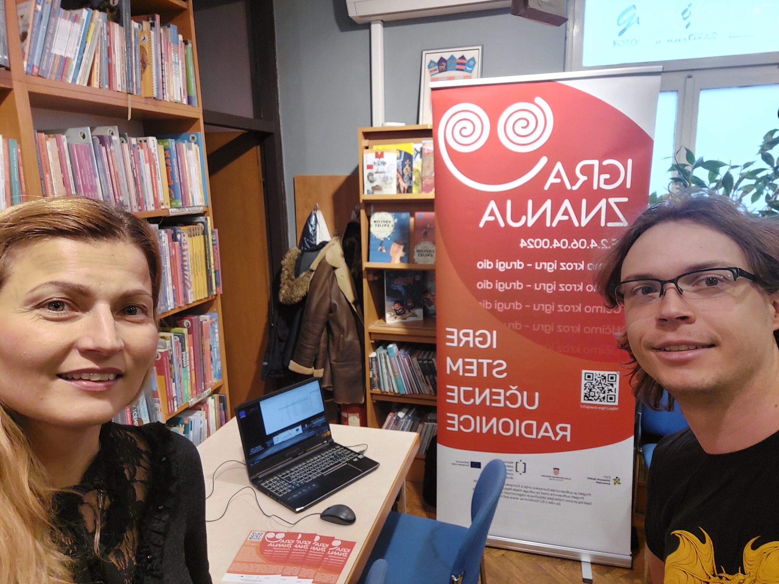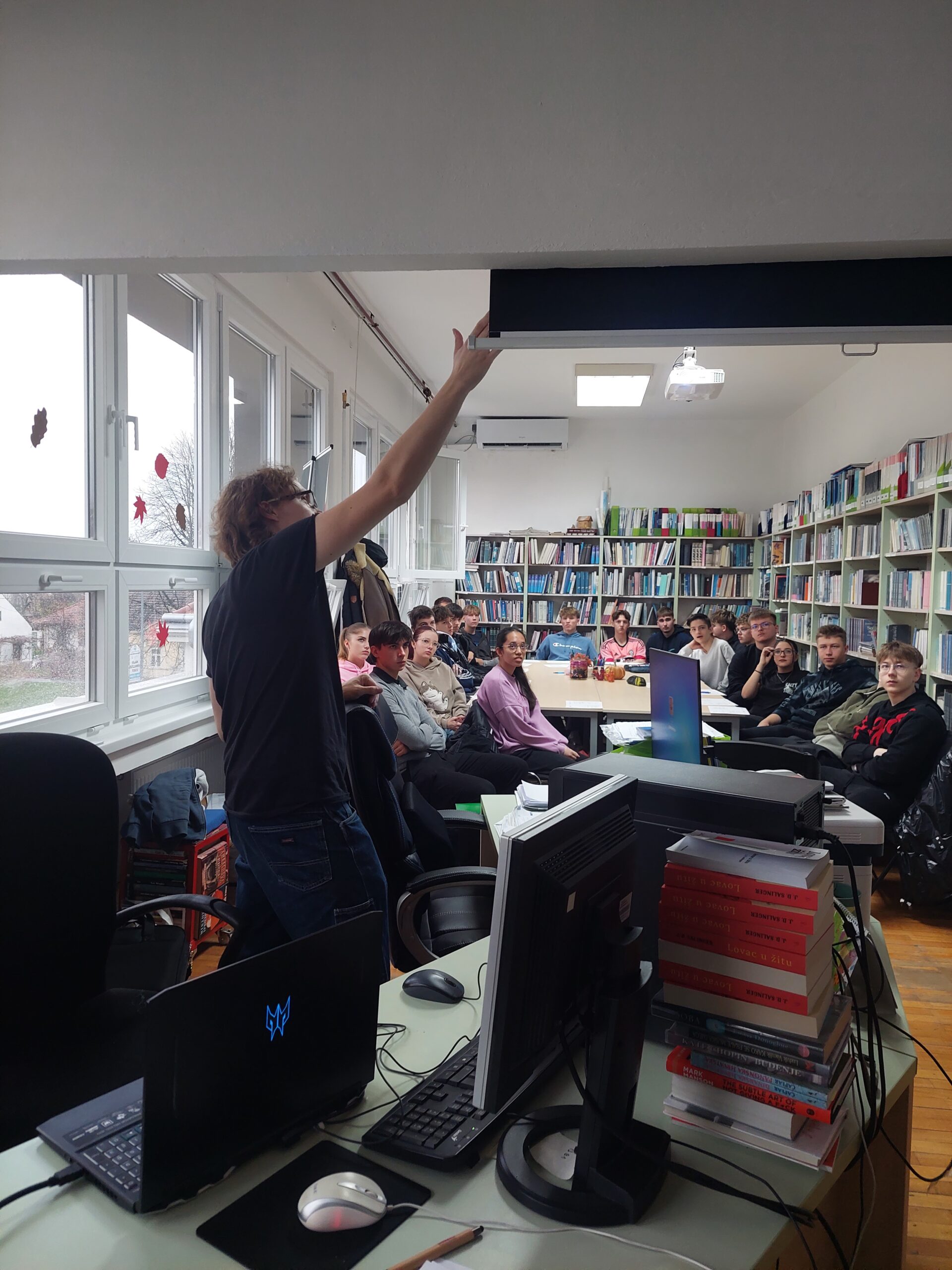 Dan smo započeli u Knjižnici Bjelovar (Trg Eugena Kvaternika 7A, ulaz iz dvorišta, iznad kazališta), gdje smo od 11:00 do 12:00 predstavili projekt i STEM aktivnosti koje provodimo.