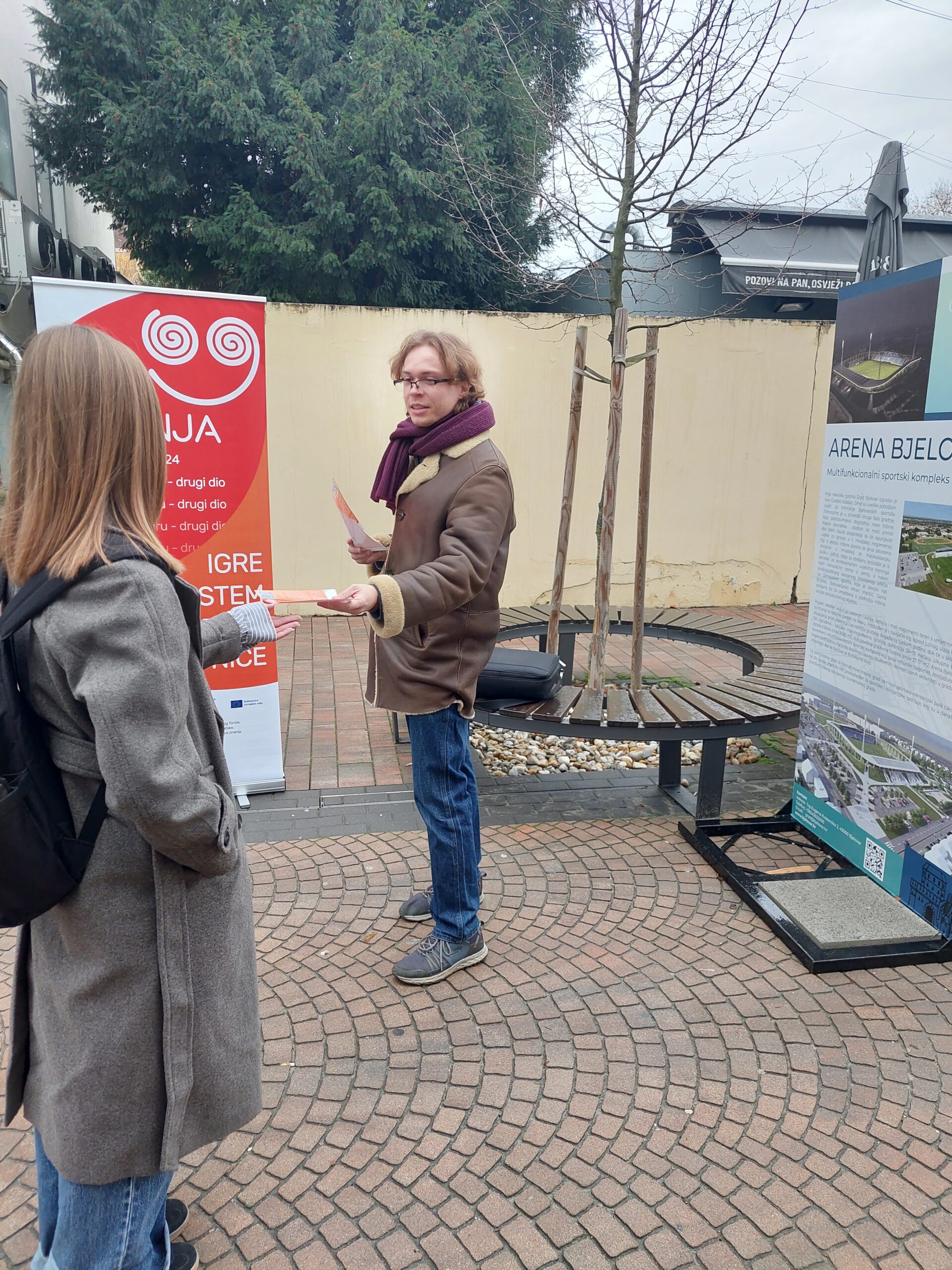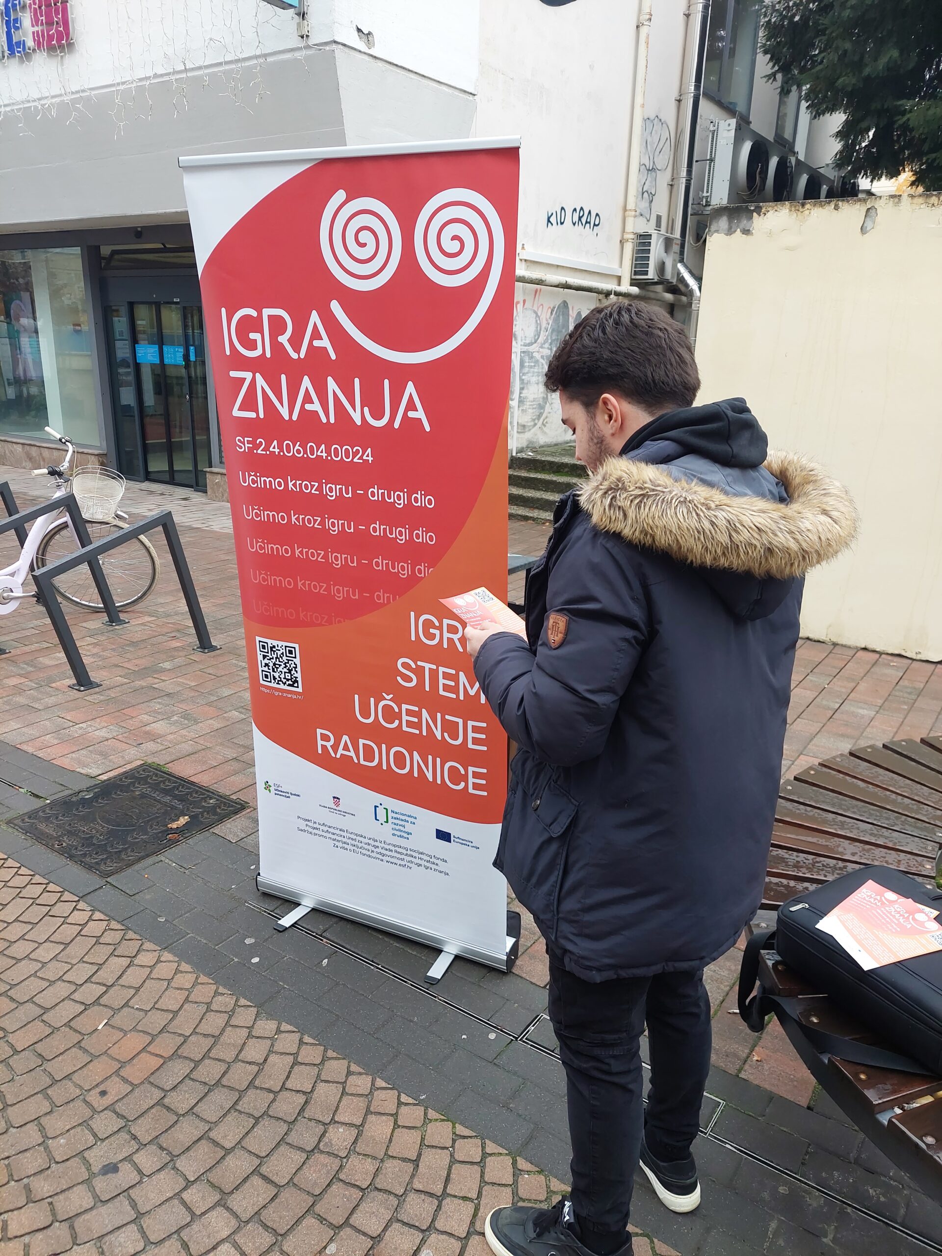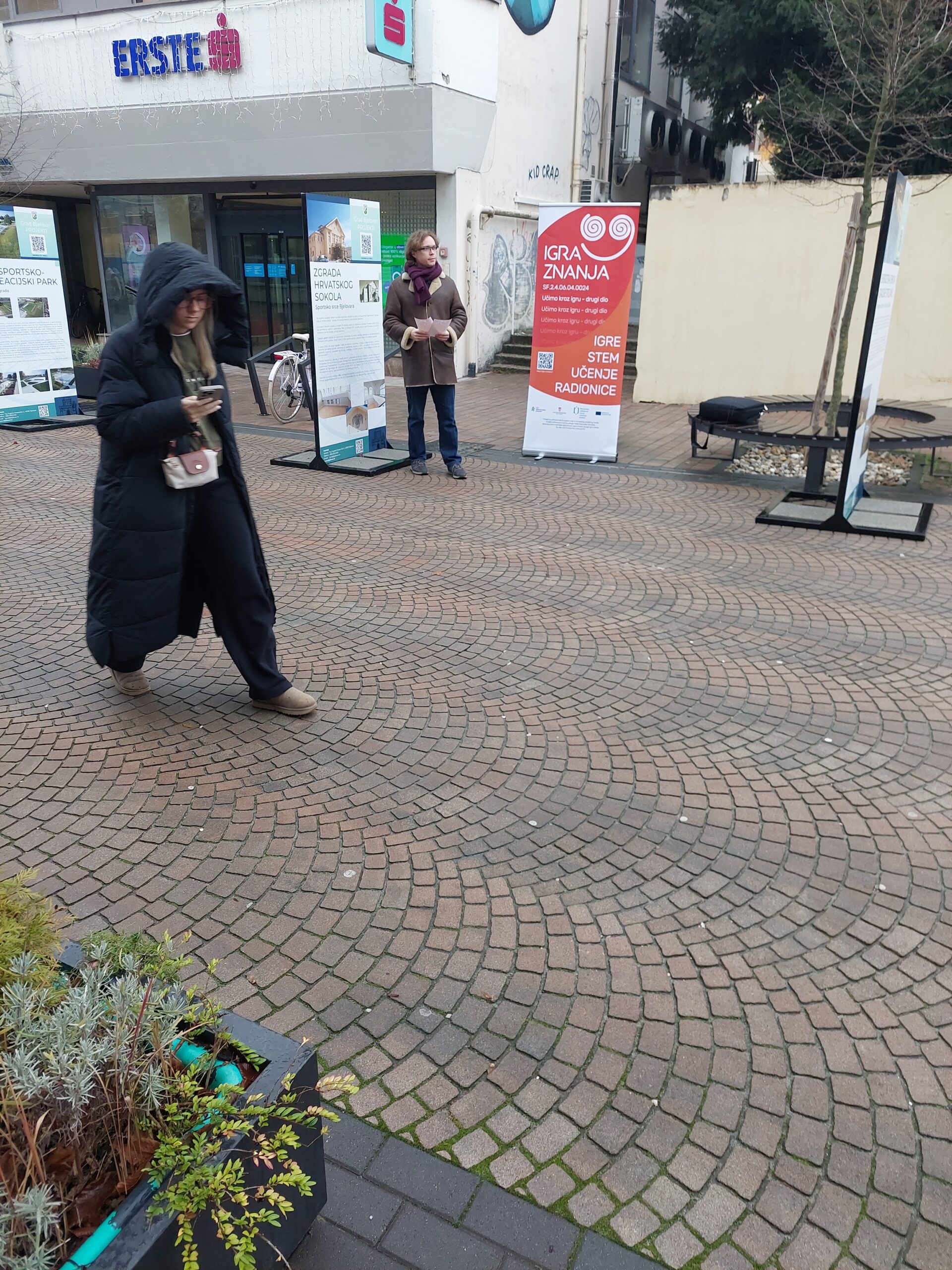 Od 12:00 do 13:00 preselili smo se na šetnicu u centru grada, gdje smo nastavili promociju projekta i STEM područja na otvorenom.