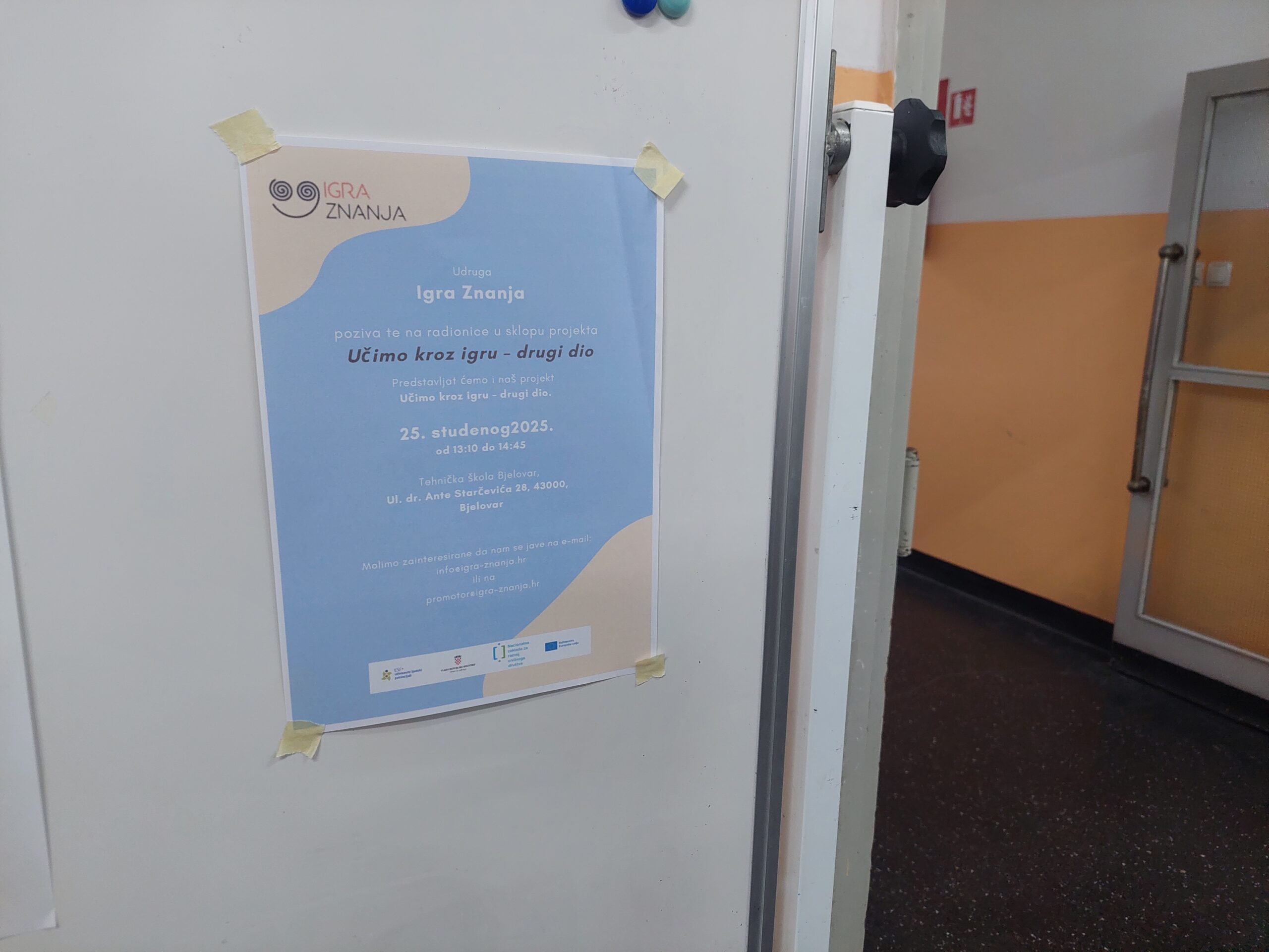 U sklopu europskog projekta „Učimo kroz igru – drugi dio“ (SF.2.4.06.04.0024), koji provodi udruga Igra znanja zajedno s partnerima iz znanstvenih institucija i srednjih škola, 25. studenoga 2025. proveli smo cijeli dan u Bjelovaru u znaku STEM-a, igara i učenja kroz iskustvo.
